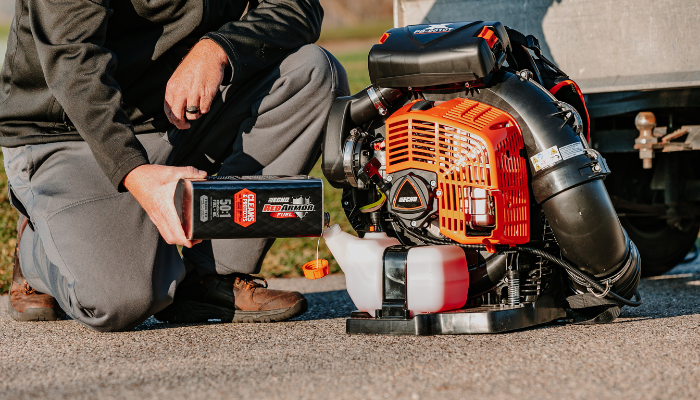 Begin by mixing fresh two-cycle fuel according to equipment manufacturer specifications—typically 50:1 ratio for most professional equipment. Use appropriately sized containers matching the fuel volume being mixed. This ensures accurate measurements and complete mixing.