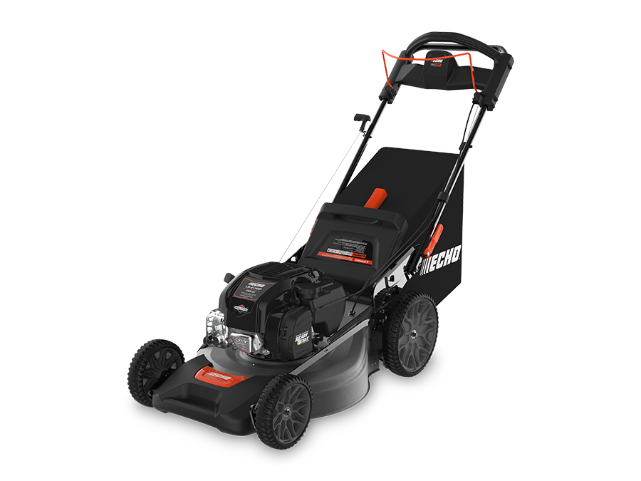 The ECHO LM-2116SP 163cc, 21" self-propelled lawn mower offers 3-in-1 mulching, bagging, and side discharge. Its Briggs & Stratton ReadyStart® engine ensures easy starts, while the variable speed, ball-bearing wheels, and single-point height adjustment from 1.25 in. - 4.0 in. provide smooth, customizable mowing.