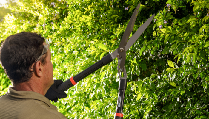 Before beginning pruning work, inspect the immediate area for hazards including active insect nests, animal presence, unstable footing, and overhead hazards. Address identified hazards before commencing cutting operations.